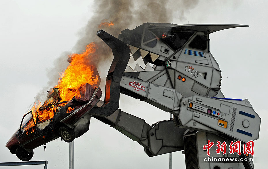 3月30日,一款重約27噸的機器怪獸在澳大利亞悉尼瞬間將一臺汽車摧毀。據悉,該款機器怪獸是由30多個公司花了兩年時間研究出來的。圖片來源:中國新聞網