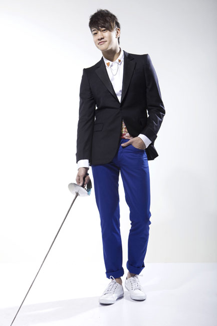 4月8日,北京訊,何潤東變身擊劍手拍攝了一組當下最流行的混搭風寫真照。何潤東上身身著黑色紳士西服,下身配上一條彩色休閑褲,外加白色帆布鞋,將混搭風表現得淋漓盡致。