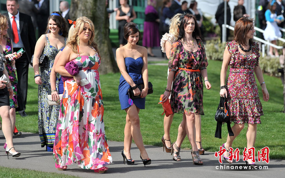 4月9日,英國安特里,女士們盛裝出席安特里賽馬場女士日活動。