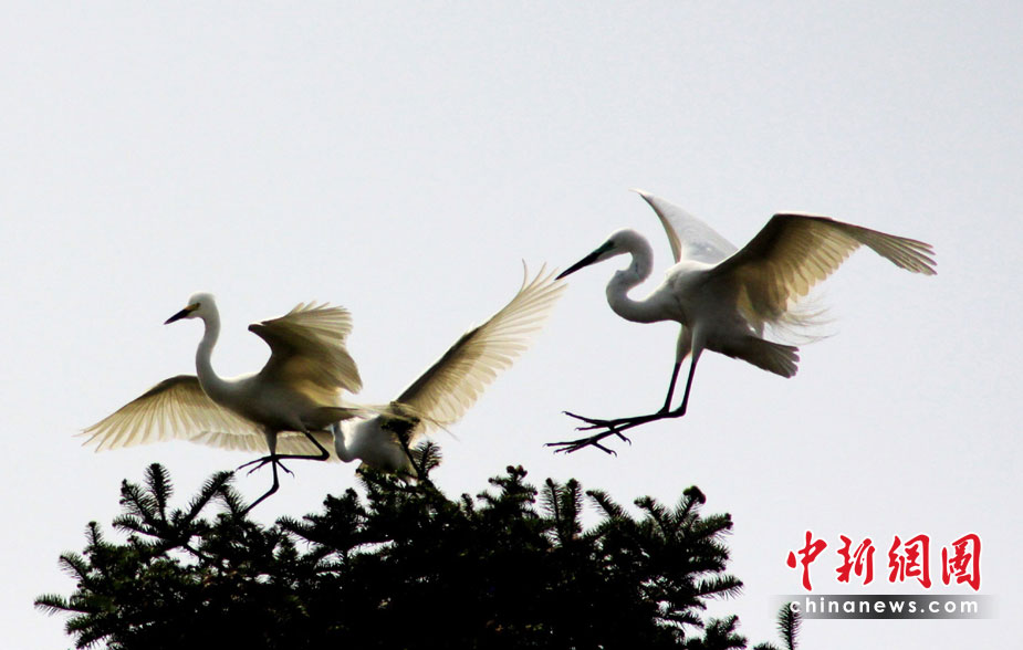 4月9日,一對白鷺在象山森林公園歡躍飛舞,譜寫一曲春日戀歌。四月,正值芳草萋萋,萬物生機勃勃。萬余只白鷺陸續抵達江西南昌象山森林公園棲息,繁衍后代,成為鄱陽湖濕地的一大獨特景觀, 吸引眾多攝影愛好者前來拍攝和觀賞。孫永勝 胡國林 攝