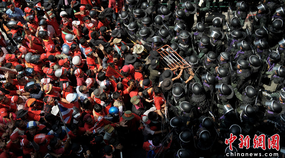 4月10日,泰國軍隊在首都曼谷對支持前總理他信的“紅衫軍”進行武力驅散,雙方爆發嚴重沖突,目前已造成18人死亡,數百人受傷。圖片來源:中國新聞網