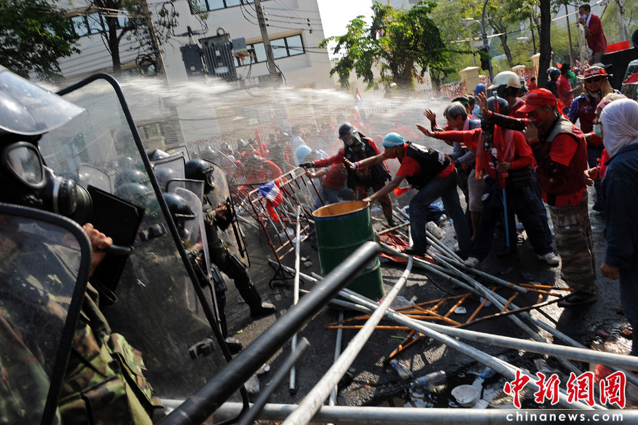 4月10日,泰國軍隊在首都曼谷對支持前總理他信的“紅衫軍”進行武力驅散,雙方爆發嚴重沖突,目前已造成18人死亡,數百人受傷。圖片來源:中國新聞網