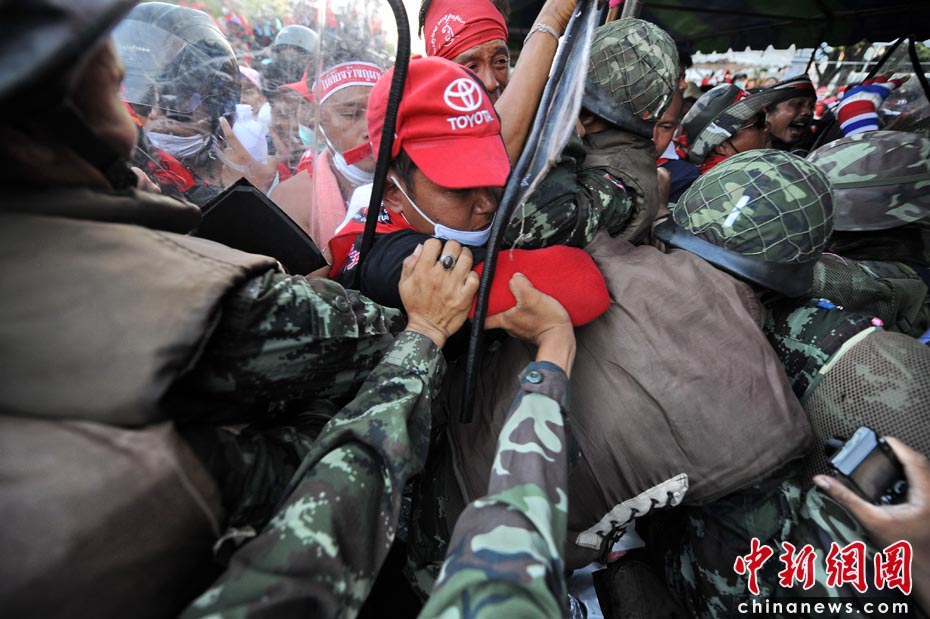 4月10日,泰國軍隊(duì)在首都曼谷對(duì)支持前總理他信的“紅衫軍”進(jìn)行武力驅(qū)散,雙方爆發(fā)嚴(yán)重沖突,目前已造成18人死亡,數(shù)百人受傷。圖片來源:中國新聞網(wǎng)