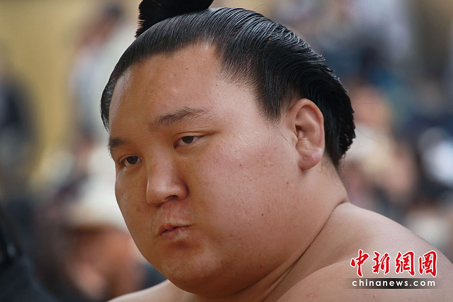 4月9日,來自世界各地的相撲選手齊聚日本東京靖國神社內(nèi)的相撲館參加為期一天的日本供奉大相撲比賽。圖片來源:中國新聞網(wǎng)
