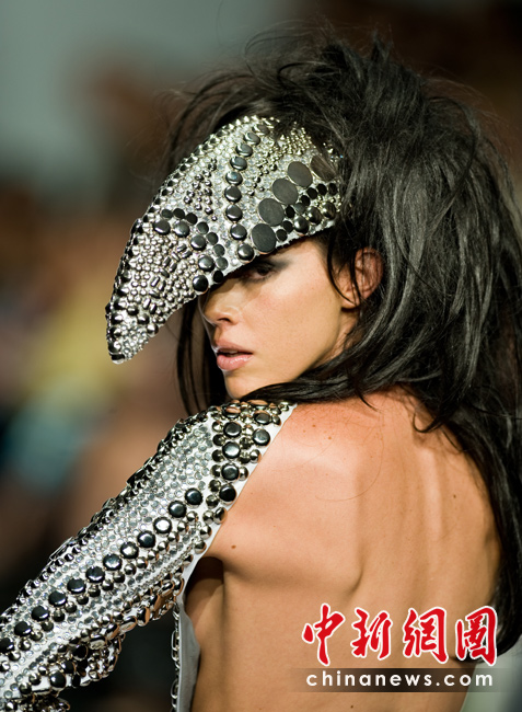 當地時間4月12日,在墨西哥首都墨西哥城舉行的奔馳時裝周,靚模們各種怪異妝扮在T臺上上演了一場讓人眩目的造型秀。