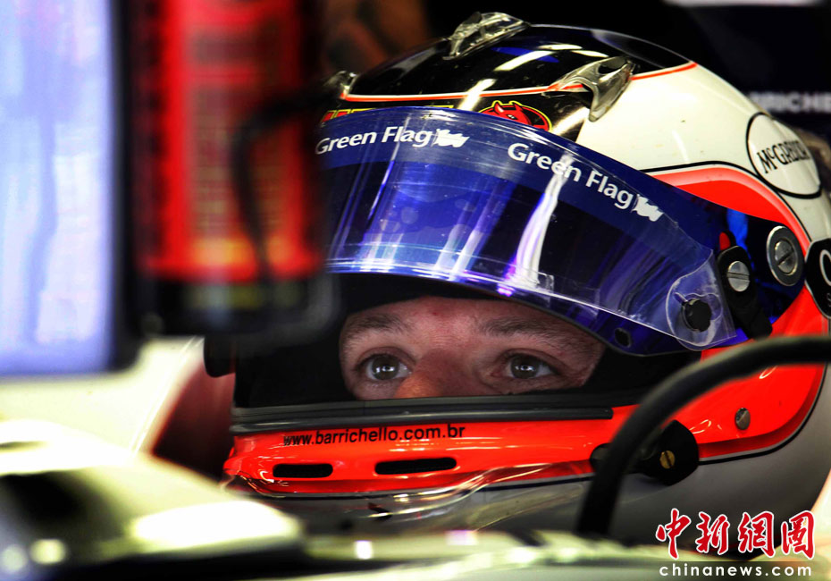 4月16日,2010國際汽聯F1世界錦標賽上海站在上海國際賽車場開始車手第一、第二次練習賽。圖為代表威廉姆斯車隊出戰的巴西車手巴里切羅。中新社記者 任晨鳴 攝