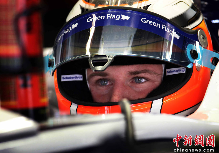 4月16日,2010國際汽聯F1世界錦標賽上海站在上海國際賽車場開始車手第一、第二次練習賽。圖為代表威廉姆斯車隊出戰的德國車手霍肯伯格。中新社記者 任晨鳴 攝