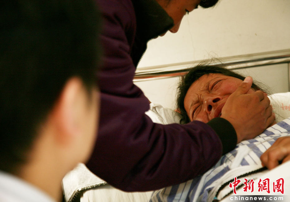 4月16日,四川省人民醫院神經內科醫生開始對首個玉樹地震傷員進行心理干預,這名傷員叫嘎吉,于當日凌晨隨機抵達成都,她的四個孩子有三個在地震中不幸遇難,一個重傷,丈夫也不幸遇難,目前,她已有三個多月身孕,情緒非常不穩定。中新社發 張浪 攝