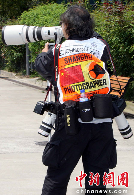 圖為全身披掛的專業(yè)攝影記者。中新社記者 任晨鳴 攝