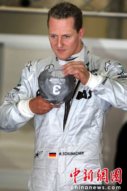 圖為梅賽德斯GP車隊DE舒馬赫在練習賽后按照規則稱量體重。中新社記者 任晨鳴 攝