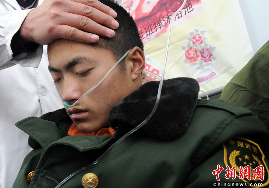 4月18日清晨,玉樹昨夜寒風冰雹使地震災區雪上加霜。部分救援人員出現嚴重高原反應,準備搭乘中國空軍重型運輸機撤回“天府之國”成都。中新社發 賈國榮 攝