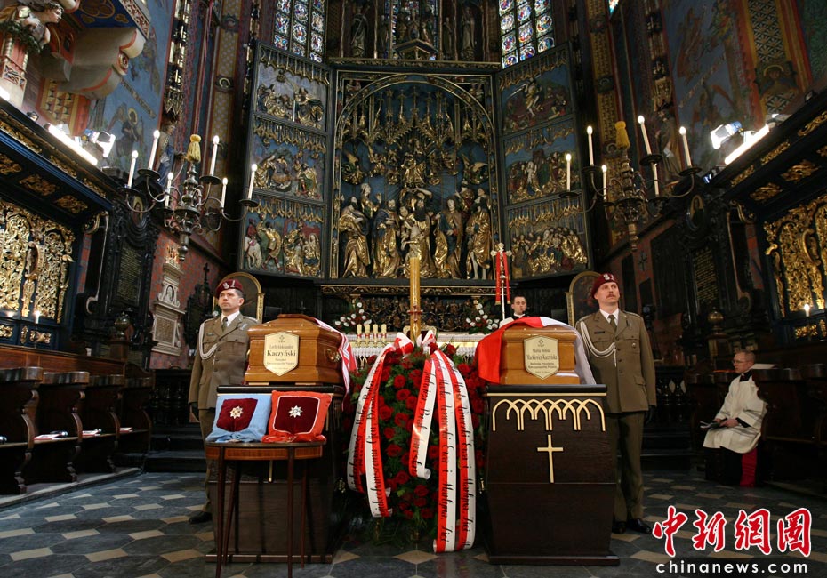 當(dāng)?shù)貢r間4月18日,卡欽斯基夫婦的葬禮在波蘭南部城市克拉科夫舉行。其后,夫婦二人的遺體將被運(yùn)往當(dāng)?shù)赜兄锨隁v史的瓦維爾宮安葬。圖片來源:中國新聞網(wǎng)