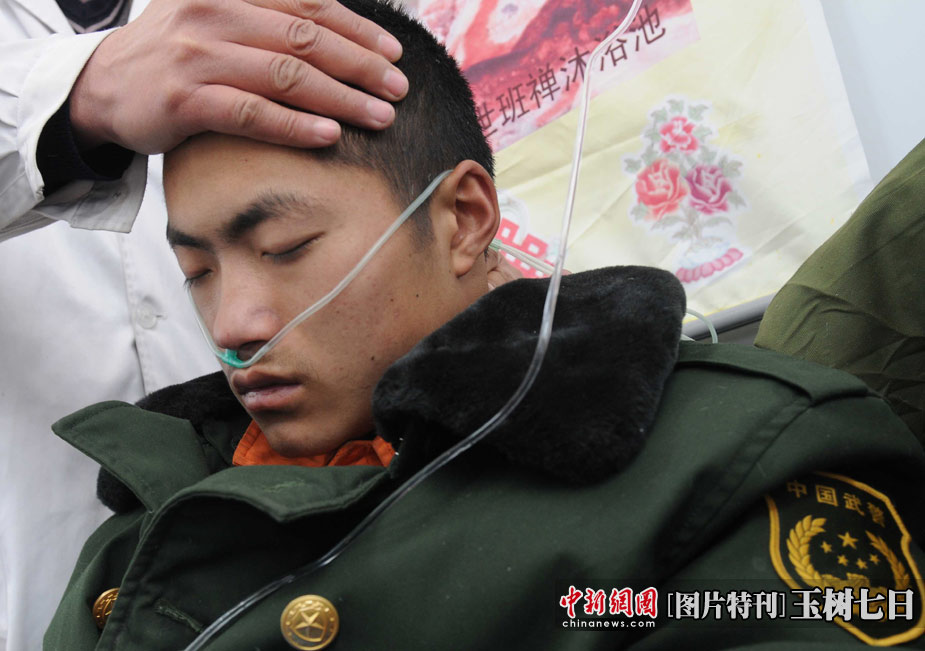 4月18日清晨,玉樹昨夜寒風冰雹使地震災區雪上加霜。部分救援人員出現嚴重高原反應。中新社發 賈國榮 攝