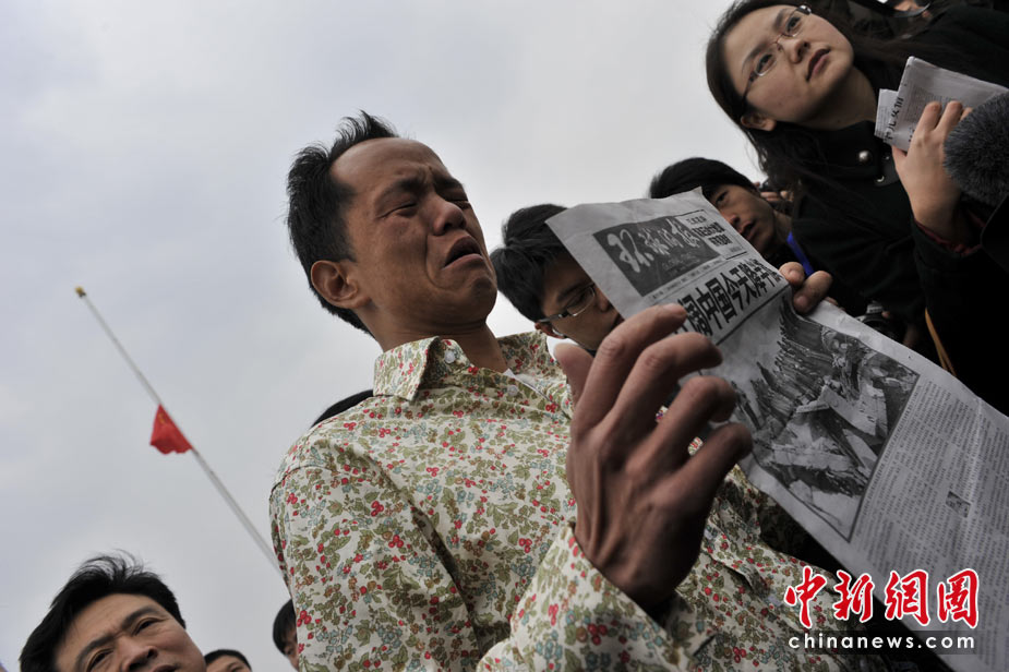 4月21日,為表達全國各族人民對青海玉樹地震遇難同胞的深切哀悼,中國國務院決定,舉行全國哀悼活動,全國和駐外使領館下半旗志哀,停止公共娛樂活動。圖為北京天安門廣場上哀悼遇難者的民眾。中新網記者 金碩 攝