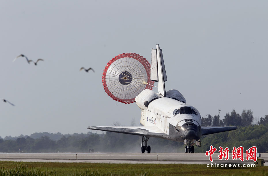 美國發現號航天飛機于當地時間4月20日成功降落在佛羅里達州肯尼迪航天中心,結束了為期15天的國際空間站建設之旅。圖片來源:中國新聞網
