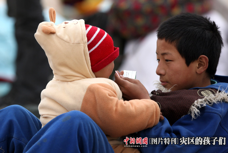 7.1級強震襲來,家園坍塌,親人逝去。面對災難,震區的許多孩子表現出了令人感動的堅強。孩子們,我們由衷地希望這份堅強能超越你們的悲傷,因為就在明天,幸福還會回到你們身旁。中新社記者 盛佳鵬 攝