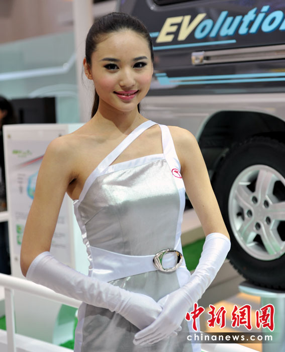 “第十一屆北京國際車展”是名車新品搶先亮相的舞臺,也成了車模們爭奇斗艷的場所,參觀者在車展中可以享受兩道視覺大餐。中新網記者 金碩 攝