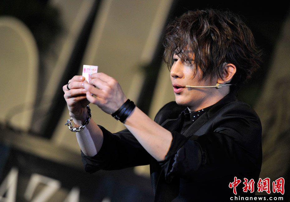 4月25日,由《時尚芭莎》雜志社主辦的第8屆“BAZAAR明星慈善夜”活動在上海舉行,圖為劉謙為現場嘉賓表演精彩炫目的魔術。 中新網記者 金碩 攝