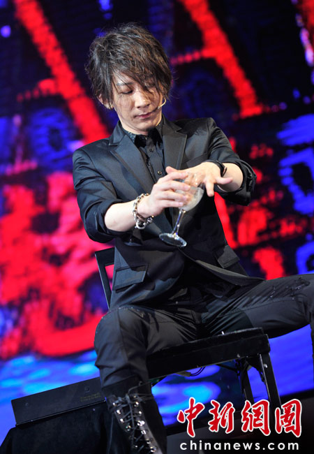 4月25日,由《時尚芭莎》雜志社主辦的第8屆“BAZAAR明星慈善夜”活動在上海舉行,圖為劉謙為現場嘉賓表演精彩炫目的魔術。 中新網記者 金碩 攝