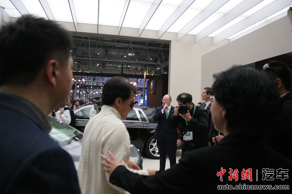 成龍日前亮相了北京車展,引來大批媒體圍觀。圍觀的媒體將前門封堵,以至成龍在貴賓室躲藏了10分鐘后,在某著名品牌汽車營銷副總監的陪同下,才從后門離開會場。 左盛丹/攝