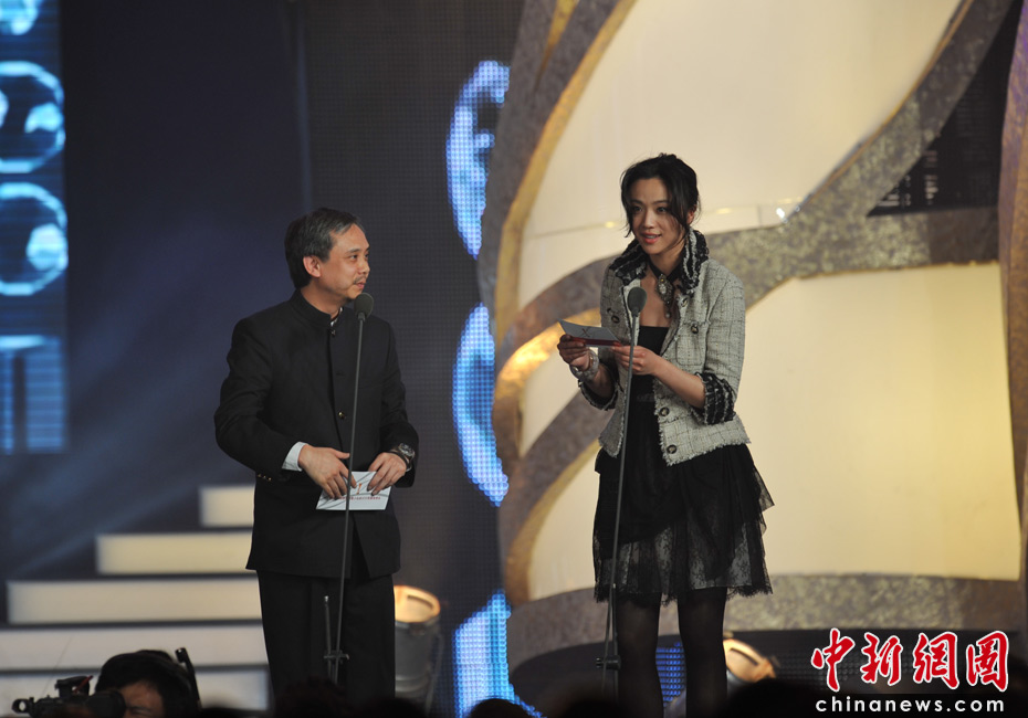 4月28日,第十屆電影頻道數字電影百合獎頒獎典禮舉行。湯唯攜手陳嘉上成為頒獎嘉賓為優秀男演員頒獎。呂聿來、王景春獲得優秀男演員將,優秀女演員被吳越、董玲搬走。 中新網記者 金碩 攝