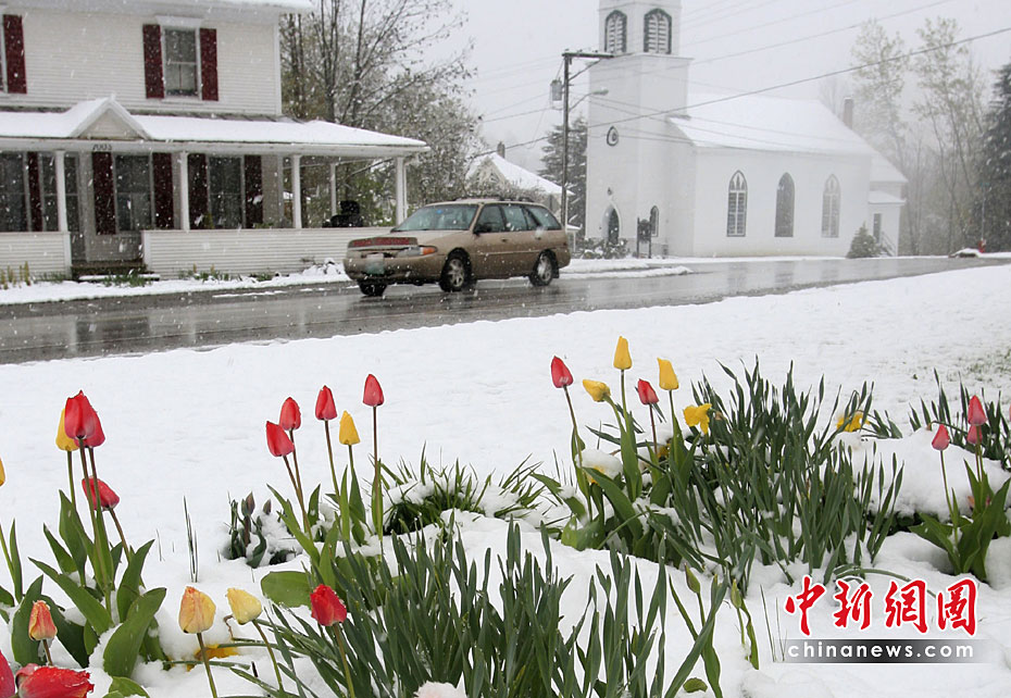 當地時間4月28日,美國佛蒙特州部分地區遭大雪襲擊。這場大雪給人們的出行帶來不便。圖片來源:中國新聞網
