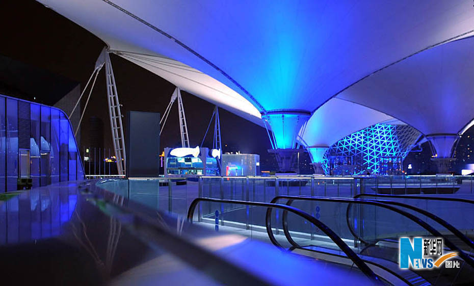 靜待開幕的世博園沉浸在一片暮色中,流光溢彩,給人無限遐想。從外灘到世博園,“夜”上海不斷延伸,讓人激情跳躍。圖片來源:新華網孫巍攝