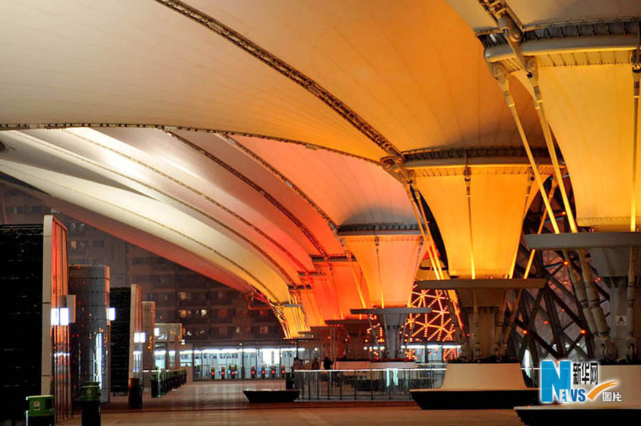 靜待開幕的世博園沉浸在一片暮色中,流光溢彩,給人無(wú)限遐想。從外灘到世博園,“夜”上海不斷延伸,讓人激情跳躍。圖片來(lái)源:新華網(wǎng)孫巍攝