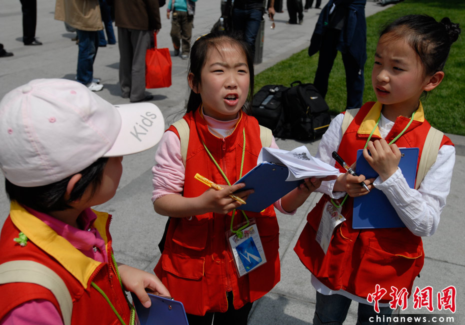 30日上午,記者在上海外灘采訪時遇到小主人報新聞學(xué)校的“小記者”們在采訪,成為他們今天的第一個采訪對象。“小記者”們最關(guān)心的問題是關(guān)于世博會,“如何讓世界變得更美好”。她們都表示非常想去看世博會,最想看的是中國館,但是要留到最后看,“因為其它館都會拆掉,中國館會保留下來”。“小記者”們說,自己要從身邊小事做起,做有文明有素質(zhì)的人,并表示希望自己將來成為真正的“大記者”,更好地報道上海。吳歆/文 王紅綱/圖