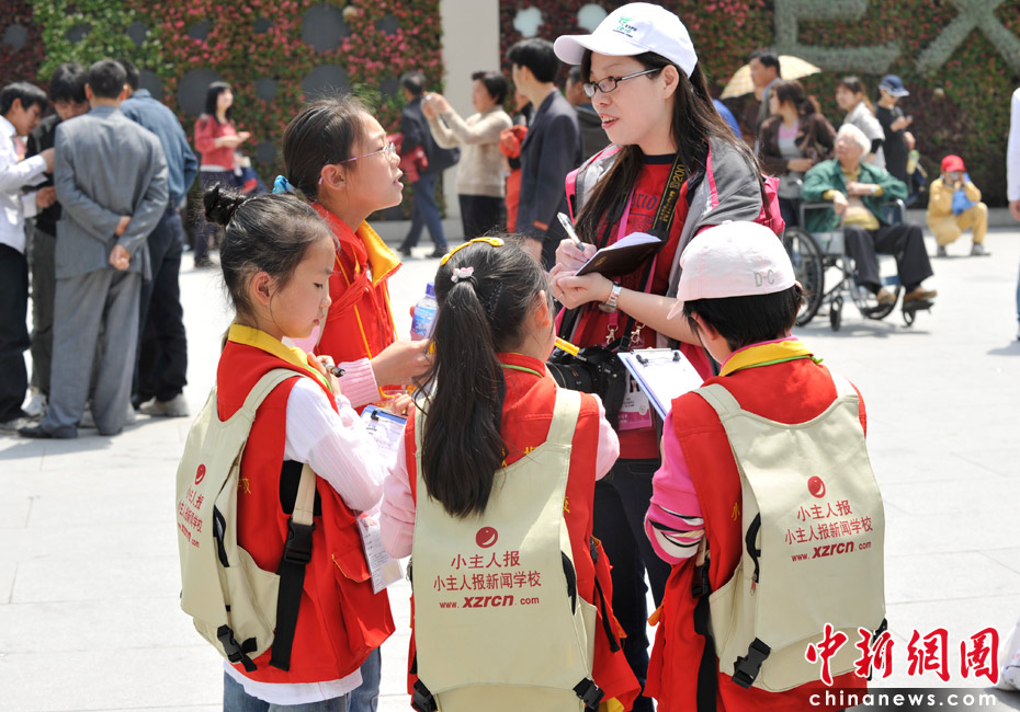 30日上午,記者在上海外灘采訪時遇到小主人報新聞學(xué)校的“小記者”們在采訪,成為他們今天的第一個采訪對象。“小記者”們最關(guān)心的問題是關(guān)于世博會,“如何讓世界變得更美好”。她們都表示非常想去看世博會,最想看的是中國館,但是要留到最后看,“因為其它館都會拆掉,中國館會保留下來”。“小記者”們說,自己要從身邊小事做起,做有文明有素質(zhì)的人,并表示希望自己將來成為真正的“大記者”,更好地報道上海。吳歆/文 王紅綱/圖