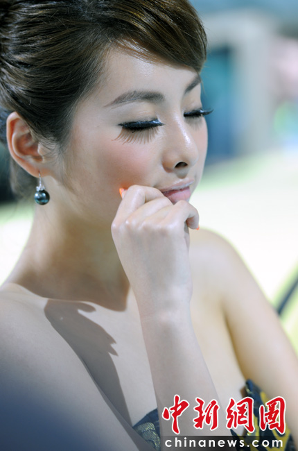 “第十一屆北京國際車展”是名車新品搶先亮相的舞臺,也成了車模們爭奇斗艷的場所,參觀者在車展中可以享受兩道視覺大餐。中新網記者 金碩 攝