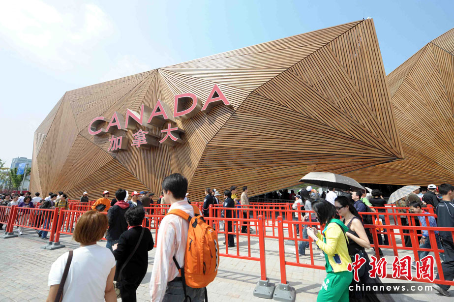 5月1日,上海世博會正式開園迎客,首批游客入園參觀。圖為數以萬計的海內外觀眾陸續步入加拿大館參觀。中新社發 陳文 攝