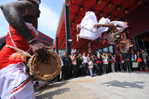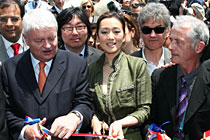 5月1日,上海世博會正式開園,在法國館內,美麗的法國少女熱情地接待著每一位進館參觀的游客。圖為法國美女與中國小伙“親密接觸”,盡顯法蘭西浪漫風情。中新社發 湯彥俊 攝