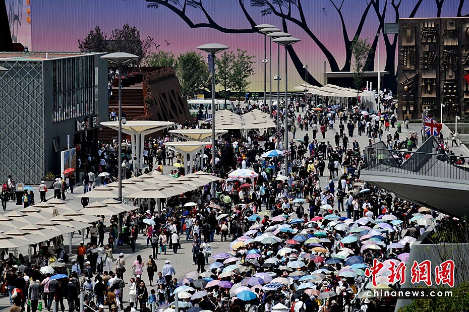 5月1日,2010上海世博園正式開園第一天,參觀者從浦東、浦西10多個出入口進入園區,世博園區內游人如潮。圖片來源:中國新聞網