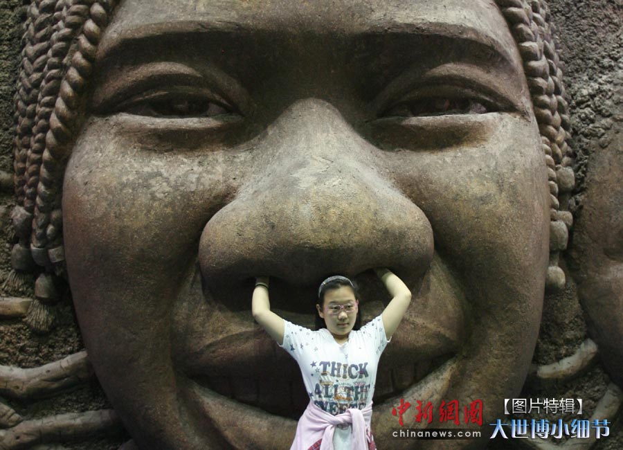5月1日,上海世博會正式開園,當日有20萬人次的游客參觀了世博園。世博首日,許許多多的小細節都帶給人一種全新的體驗。圖為一個小女孩在上海世博會非洲聯合館的笑臉墻”前留影。中新社發 蘇丹 攝
