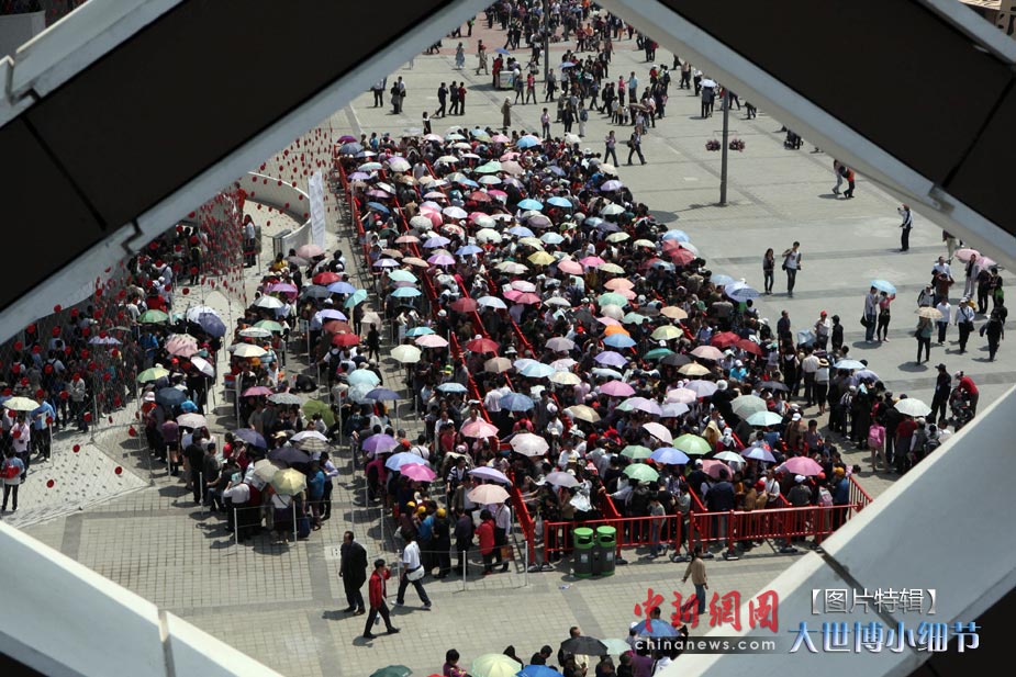 5月1日,上海世博會(huì)正式開園,當(dāng)日有20萬人次的游客參觀了世博園。世博首日,許許多多的小細(xì)節(jié)都帶給人一種全新的體驗(yàn)。圖為上海世博會(huì)開園首日游人如潮,各個(gè)國家館外都排起了等候參觀的長隊(duì)。中新社發(fā) 湯彥俊 攝