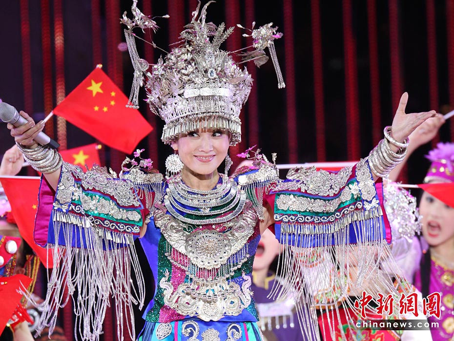 圖為宋祖英身著民族服裝演唱。王保勝 攝