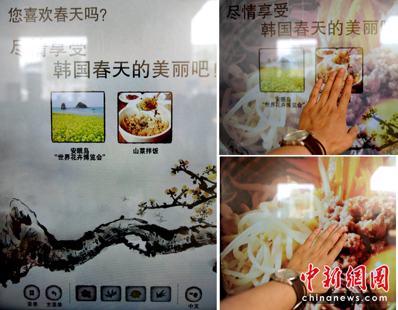 互動觸摸屏,可以瀏覽韓國美麗風光和美食文化。中新網(wǎng)記者 王紅綱 攝