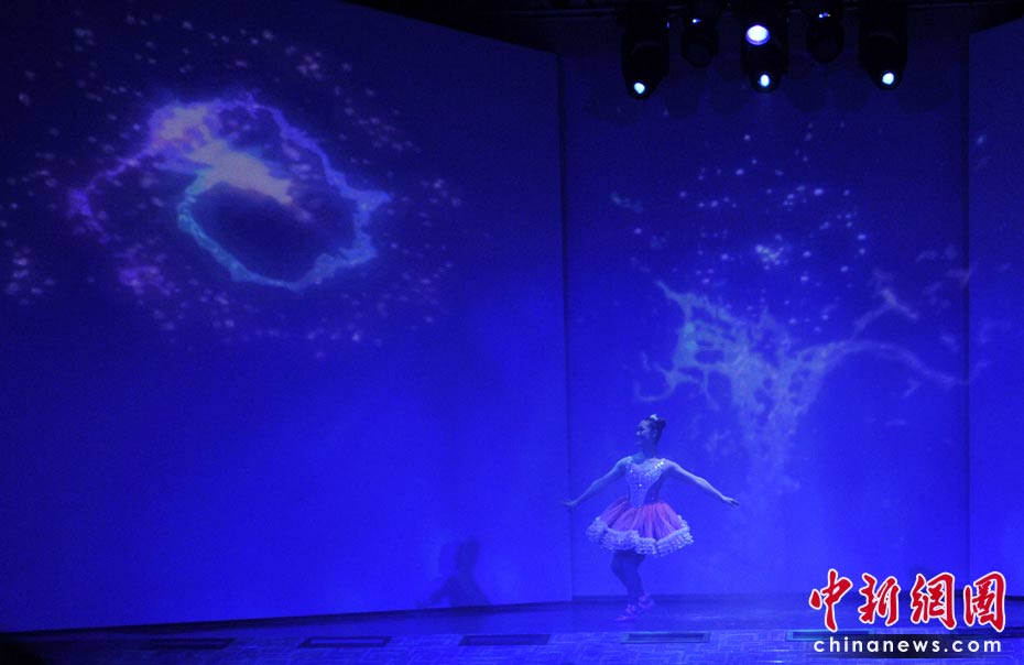 在二層游客可以看到一段由韓流明星演出一部卡通劇。劇中的人物時而是卡通形象,時而是真人形象,結合未來城市的奇幻效果,節奏輕快卻感人至深。中新網記者 王紅綱 攝