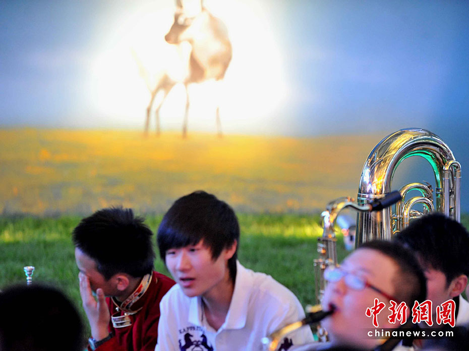 5月2日清晨,來自玉樹地震災(zāi)區(qū)結(jié)古鎮(zhèn)的藏族小樂手巴東珠,含著姐姐在地震中不幸遇難的悲痛心情,與小白楊中學(xué)生管弦樂團(tuán)來到上海世博會(huì),為中國(guó)青海館觀眾獻(xiàn)上一曲《在那遙遠(yuǎn)的地方》。他悲歡交融的情懷和演藝,感動(dòng)全場(chǎng)。巴東珠之前還是青海省人民醫(yī)院為地震傷員做藏語(yǔ)翻譯的志愿者。中新社記者 賈國(guó)榮 攝