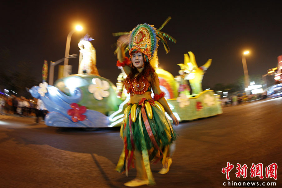 5月2日晚,由一輛輛充滿異域風情的花車和身著盛裝的表演者組成的“歡樂盛裝大巡游”在世博園區舉行。中新網記者 盛佳鵬 攝