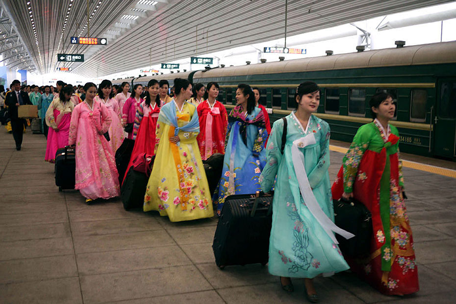 5月2日,載著198名朝鮮紅樓夢劇組演員的專列駛入丹東口岸。由朝鮮國家級藝術團-血海歌劇團創作的歌舞劇《紅樓夢》將于5月6日至9日登陸北京電視臺大劇院,這個超大演員陣容亦創下近年來華國外演出人數之最。圖片來源:新華網