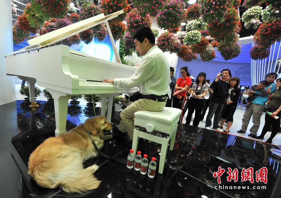5月4日是上海世博會第四天,盲人鋼琴家孫巖在生命陽光館專設區(qū)域為眾多殘疾人和觀眾演奏,導盲犬靜臥在他的腳邊,這是世博會歷史上第一次為殘疾人設館。孫巖2005年獲得“日本橫濱第一屆國際殘疾人鋼琴比賽”金獎,他是中央音樂學院有史以來第一位盲人大學生和研究生。他的傾情演奏感動全場,掌聲連連。中新社發(fā) 賈國榮 攝