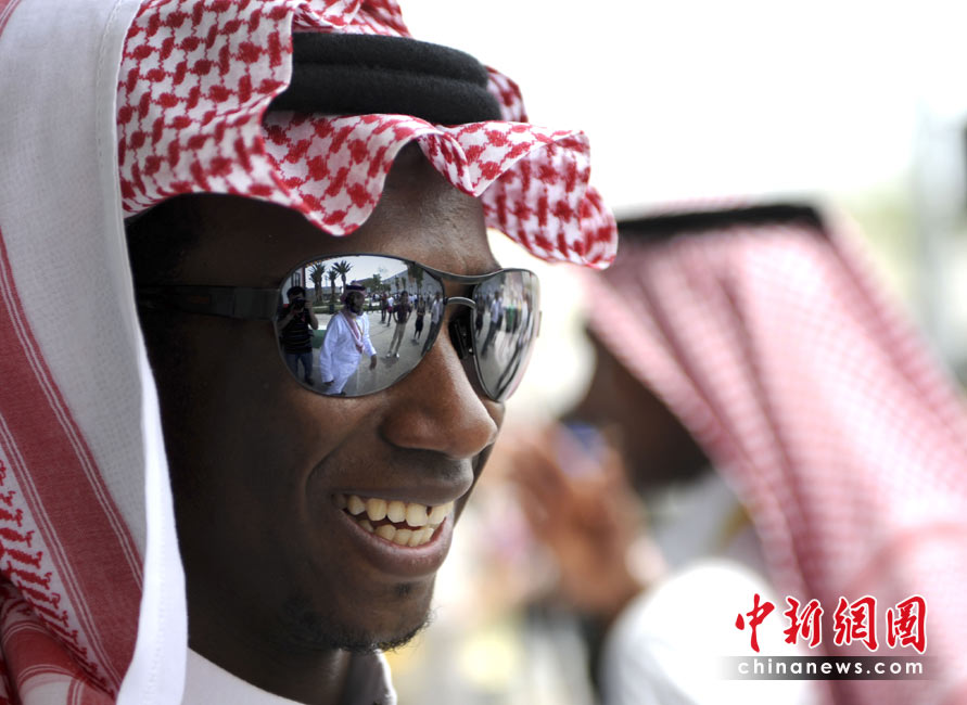 5月4日,上海世博園沙特館的工作人員歡樂接待游客。中新社發 廖攀 攝