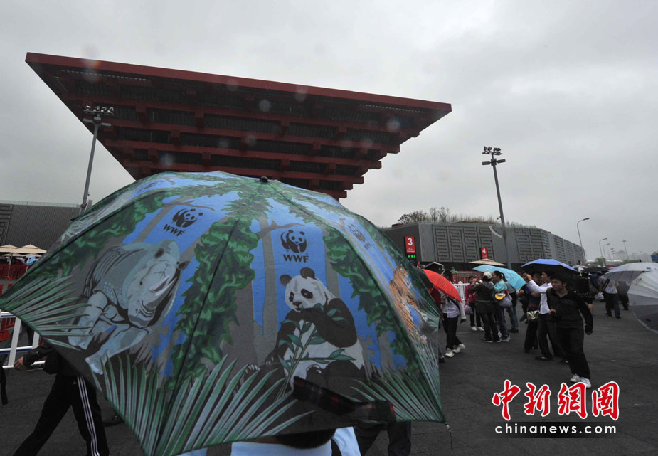 5月5日,上海世博會(huì)迎來(lái)開(kāi)園五天來(lái)首個(gè)春雨天,雨中的中國(guó)館依然是游客參觀的最愛(ài)。中新社記者 賈國(guó)榮攝