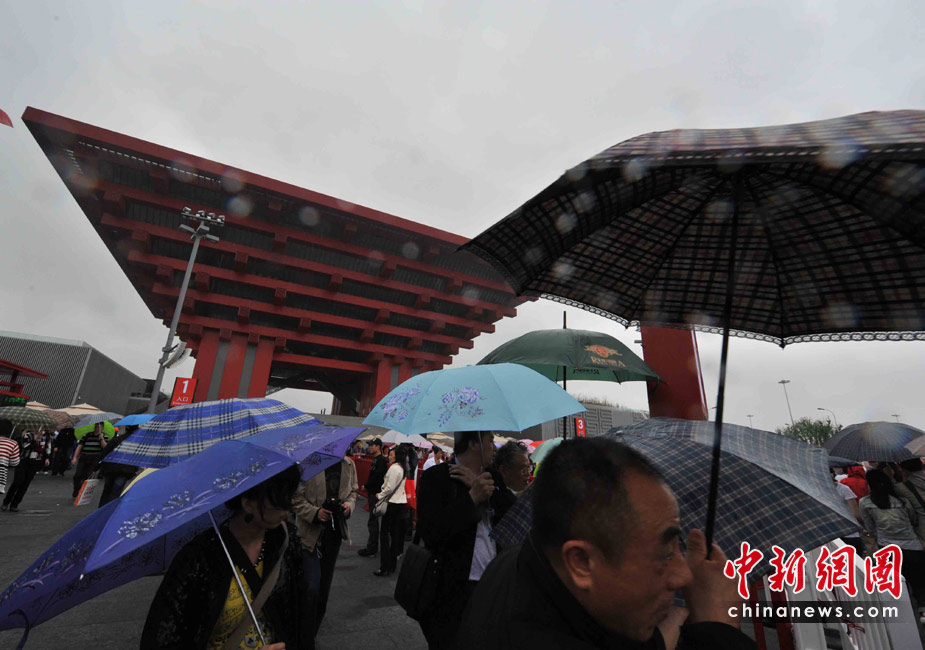 5月5日,上海世博會(huì)迎來(lái)開(kāi)園五天來(lái)首個(gè)春雨天,雨中的中國(guó)館依然是游客參觀的最?lèi)?ài)。中新社記者 賈國(guó)榮攝