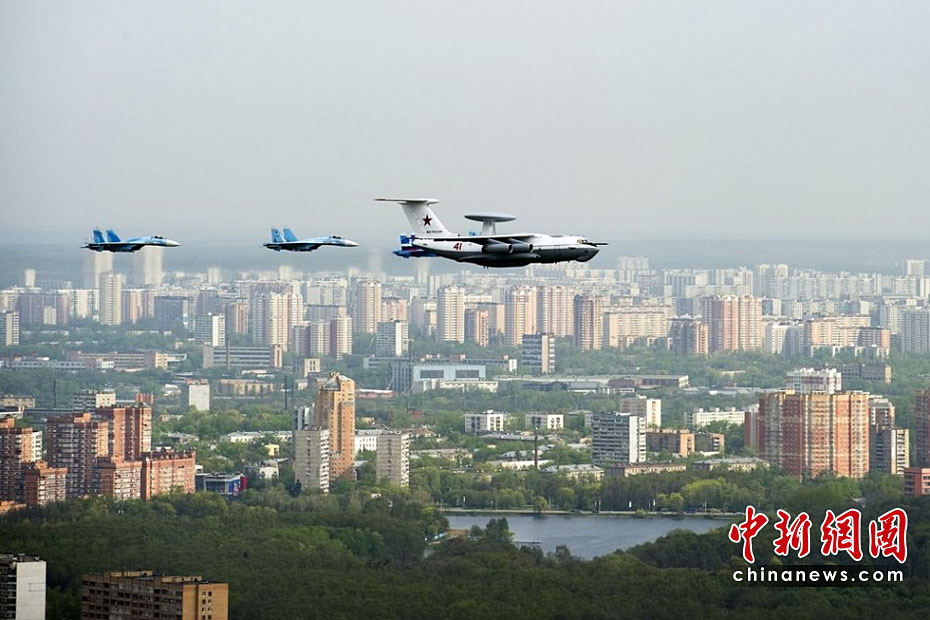 當地時間5月4日,在俄羅斯首都莫斯科,參加彩排的戰機編隊飛過紅場上空。俄羅斯將于5月9日隆重紀念衛國戰爭勝利65周年。圖片來源:中國新聞網