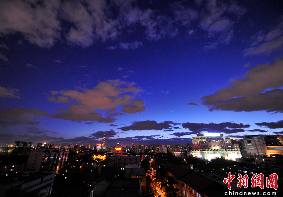 5月5日立夏,京城降雨今晨剛剛結(jié)束,霧氣伺機又起。傍晚時分,隨著四級北風(fēng)的到來,京城天氣逐漸轉(zhuǎn)晴,霧氣慢慢消散天空彤云密布夜色瑰麗。中新網(wǎng)記者 金碩 攝