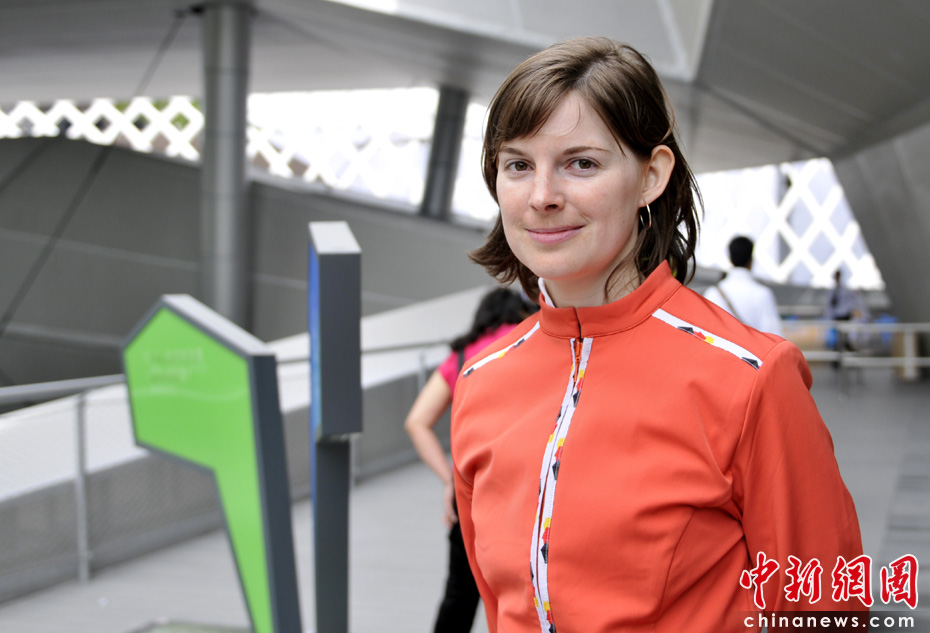 美麗的德國館工作人員,她們都能用一些簡單的漢語與中國游客交流。中新網記者 王紅綱 攝