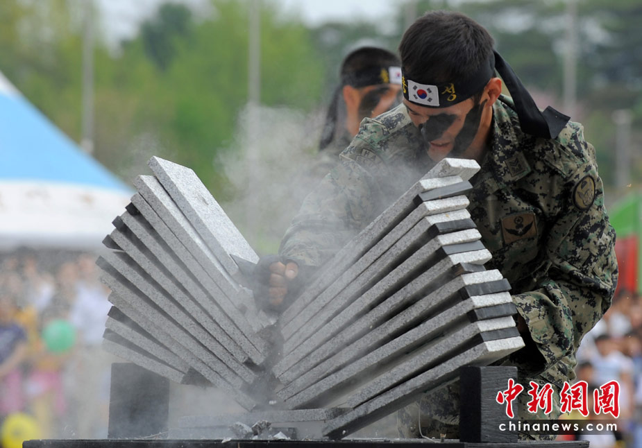 5月5日,韓國兒童節(jié),韓國突擊隊(duì)員在國家戰(zhàn)爭博物館為孩子們表演。
